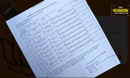 വോട്ടര് പട്ടികയുടെ ശരിയായ പരിശോധനയുടെ അടിസ്ഥാനത്തിലാണ് ഞാന് നല്കിയ വിവരങ്ങള് എന്ന് ഞാന് ഇതിനാല് പ്രഖ്യാപിക്കുന്നുവെന്ന് പറഞ്ഞാണ് ബിഎല്എമാര് അപേക്ഷകള് നല്കിയത്. കൂടാതെ തെറ്റായ പ്രഖ്യാപനം നടത്തുന്നതിനുള്ള 1950 ലെ ജനപ്രാതിനിധ്യ നിയമത്തിലെ സെക്ഷന് 31 ലെ ശിക്ഷാ വ്യവസ്ഥകളെക്കുറിച്ച് എനിക്കറിയാം എന്നും ബിഎല്എമാരുടെ പ്രസ്താവന പറയുന്നു. വോട്ടര് പട്ടികയില് കൃത്രിമം കാണിക്കുന്നതിനായി തെറ്റായ അവകാശവാദങ്ങള് ഉന്നയിക്കുന്നത് ശിക്ഷാര്ഹമായ കുറ്റകൃത്യമാണെന്ന് നിയമത്തിലെ സെക്ഷന് 31 പറയുന്നു. ഒരാളുടെ പേരുവെട്ടണമെങ്കില് കാരണം പറയണമെന്നാണ് വ്യവസ്ഥയെങ്കിലും എന്തുകാരണം കൊണ്ടാണ് പേരു വെട്ടേണ്ടതെന്ന് ഒരു ബിഎല്എമാരും രേഖപ്പെടുത്തിയില്ല.