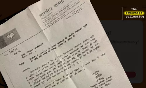 കരട് പട്ടികയില് എതിര്പ്പ് അറിയിക്കേണ്ട അവസാന ദിവസം ബിജെപി എംഎല്എയുടെ പിഎ ആയ ധീരജ് കുമാര് ഒരു അപേക്ഷ നല്കി. നിരവധി പേരുകള് അടങ്ങിയ ഒരു പട്ടികയും അപേക്ഷക്കൊപ്പമുണ്ടായിരുന്നു. 78,384 പേരെയാണ് ധീരജ് കുമാറിന് പുറത്താക്കേണ്ടിയിരുന്നത്. അതിന് പിന്നാലെ ബിഹാര് സിഇഒക്ക് സംസ്ഥാന ബിജെപി ഓഫിസില് നിന്നും കത്തും എത്തി. ധീരജ്കുമാര് നല്കിയ കത്തില് പറയുന്ന അതേ 78,384 പേര് ഇന്ത്യന് പൗരന്മാരല്ലെന്ന് ആരോപിച്ചായിരുന്നു അത്. ലോകേഷ് എന്നയാളുടെ പേരിലാണ് ഈ കത്ത് എത്തിയത്. ആരാണ് ലോകേഷ് എന്ന് ചോദിച്ചപ്പോള് അങ്ങനെ ഒരാളെ അറിയില്ലെന്നാണ് ബിജെപി നേതൃത്വം പറഞ്ഞതെന്ന് റിപോര്ട്ടേഴ്സ് കളക്ടീവിന്റെ റിപോര്ട്ട് പറയുന്നു. തങ്ങളുടെ ലെറ്റര്ഹെഡ് ദുരുപയോഗം ചെയ്തെന്ന് കാണിച്ച് പരാതി നല്കാനും ബിജെപി നേതൃത്വം തയ്യാറായില്ല.