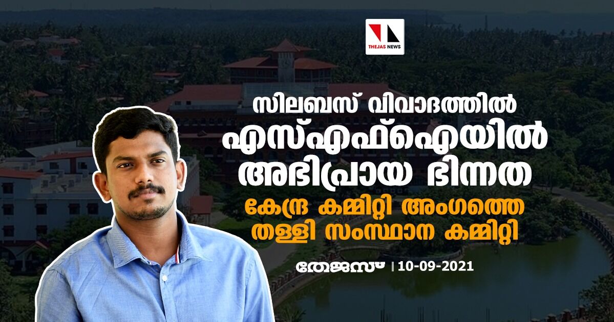 സിലബസ് വിവാദത്തിൽ എസ്എഫ്ഐയിൽ അഭിപ്രായ ഭിന്നത; കേന്ദ്ര കമ്മിറ്റി അംഗത്തെ തള്ളി സംസ്ഥാന കമ്മിറ്റി