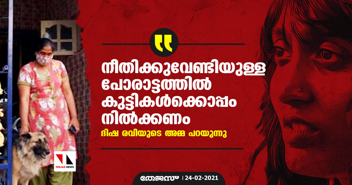 'നീതിക്കുവേണ്ടിയുള്ള പോരാട്ടത്തില് കുട്ടികള്ക്കൊപ്പം നില്ക്കണം': ദിഷ രവിയുടെ അമ്മ