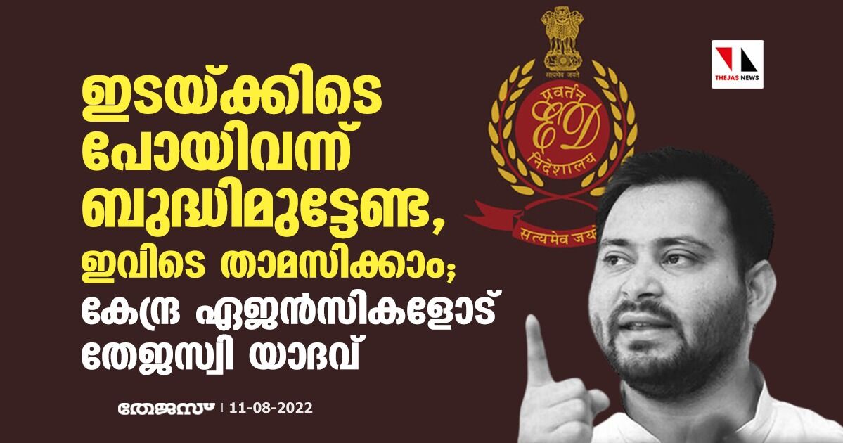 ഇടയ്ക്കിടെ പോയിവന്ന് ബുദ്ധിമുട്ടേണ്ട, ഇവിടെ താമസിക്കാം; കേന്ദ്ര ഏജൻസികളോട് തേജസ്വി യാദവ്