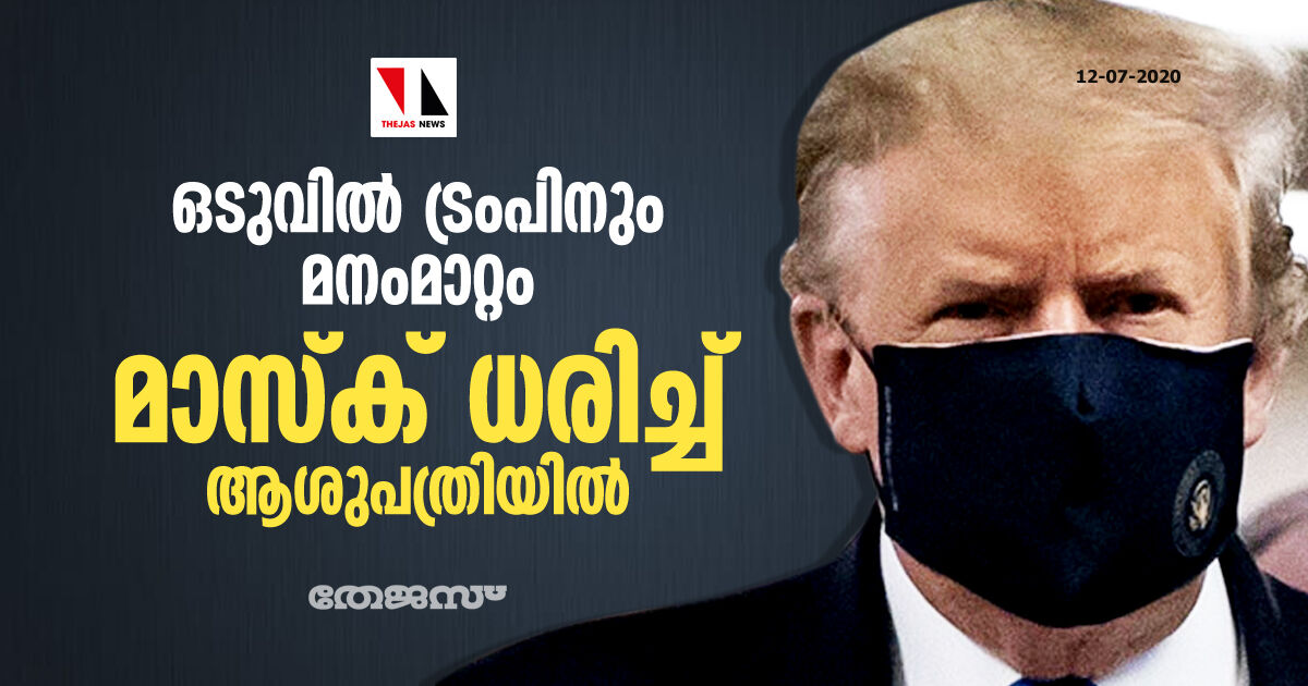 ഒടുവില് ട്രംപിനും മനംമാറ്റം; മാസ്ക് ധരിച്ച് ആശുപത്രിയില്