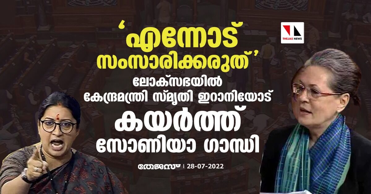 'എന്നോട് സംസാരിക്കരുത്'; ലോക്സഭയില് കേന്ദ്രമന്ത്രി സ്മൃതി ഇറാനിയോട് കയര്ത്ത് സോണിയാ ഗാന്ധി