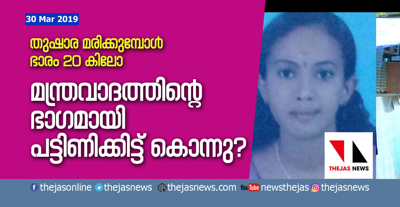 തുഷാര മരിക്കുമ്പോള് ഭാരം 20 കിലോ; മന്ത്രവാദത്തിന്റെ ഭാഗമായി പട്ടിണിക്കിട്ട് കൊന്നു?