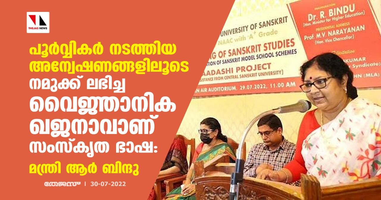 പൂര്വ്വികര് നടത്തിയ അന്വേഷണങ്ങളിലൂടെ നമുക്ക് ലഭിച്ച വൈജ്ഞാനിക ഖജനാവാണ് സംസ്കൃത ഭാഷ: മന്ത്രി ആർ ബിന്ദു