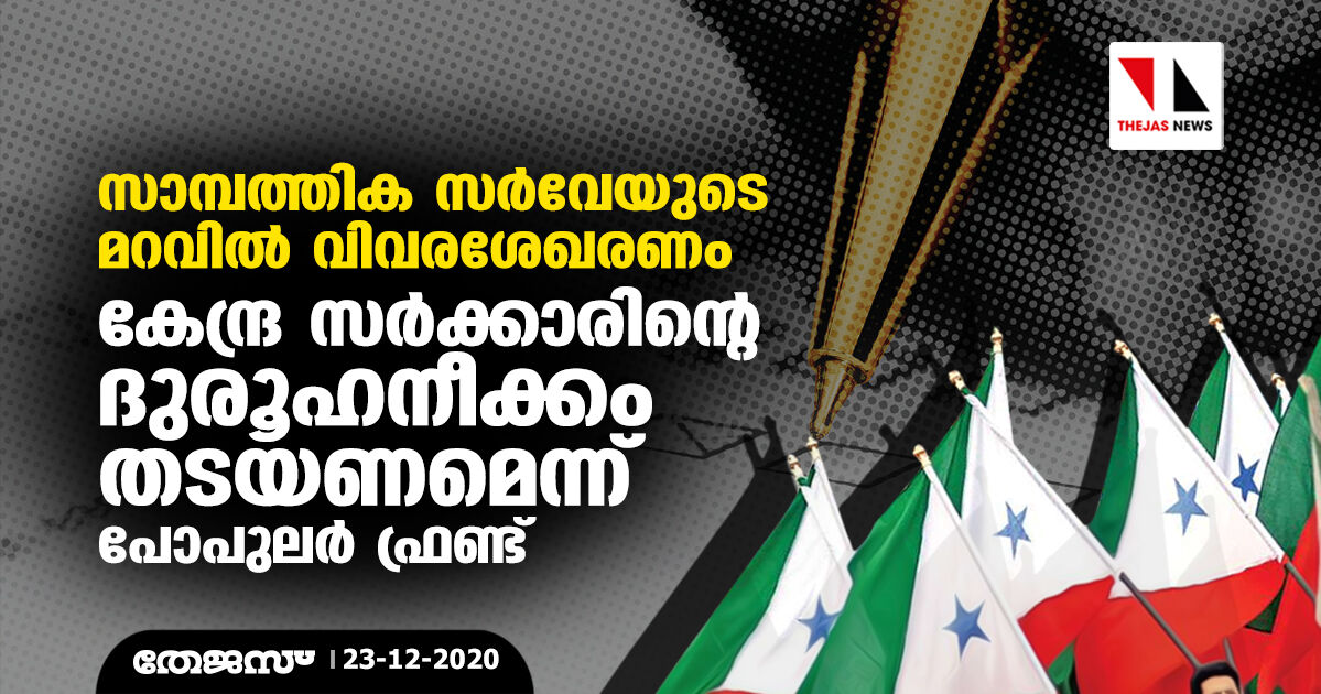 സാമ്പത്തിക സര്വേയുടെ മറവില് വിവരശേഖരണം: കേന്ദ്ര സര്ക്കാരിന്റെ ദുരൂഹനീക്കം തടയണമെന്ന് പോപുലര് ഫ്രണ്ട്