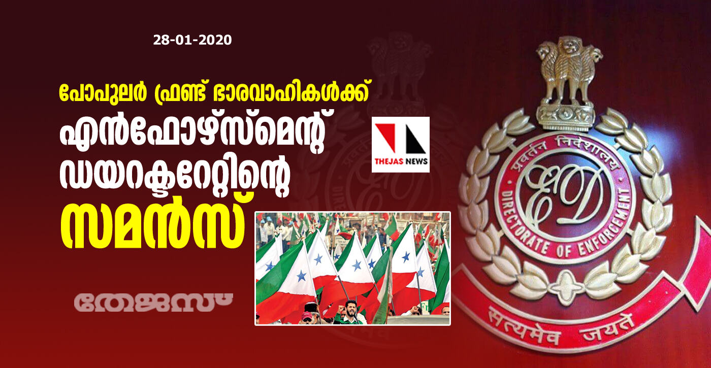 പോപുലര് ഫ്രണ്ട് ഭാരവാഹികള്ക്ക് എന്ഫോഴ്സ്മെന്റ് ഡയറക്ടറേറ്റിന്റെ സമന്സ്