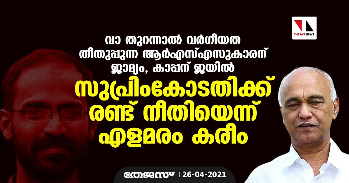 വാ തുറന്നാൽ വർഗീയത തീതുപ്പുന്ന ആർഎസ്എസുകാരന് ജാമ്യം, കാപ്പന് ജയിൽ , സുപ്രിംകോടതിക്ക് രണ്ട് നീതിയെന്ന് എളമരം കരീം