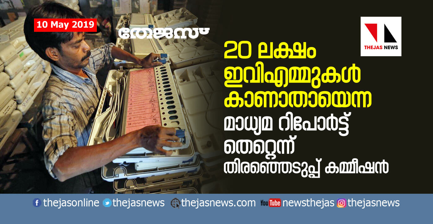 20 ലക്ഷം ഇവിഎമ്മുകള് കാണാതായെന്ന മാധ്യമ റിപോര്ട്ട് തെറ്റെന്ന് തിരഞ്ഞെടുപ്പ് കമ്മീഷന്