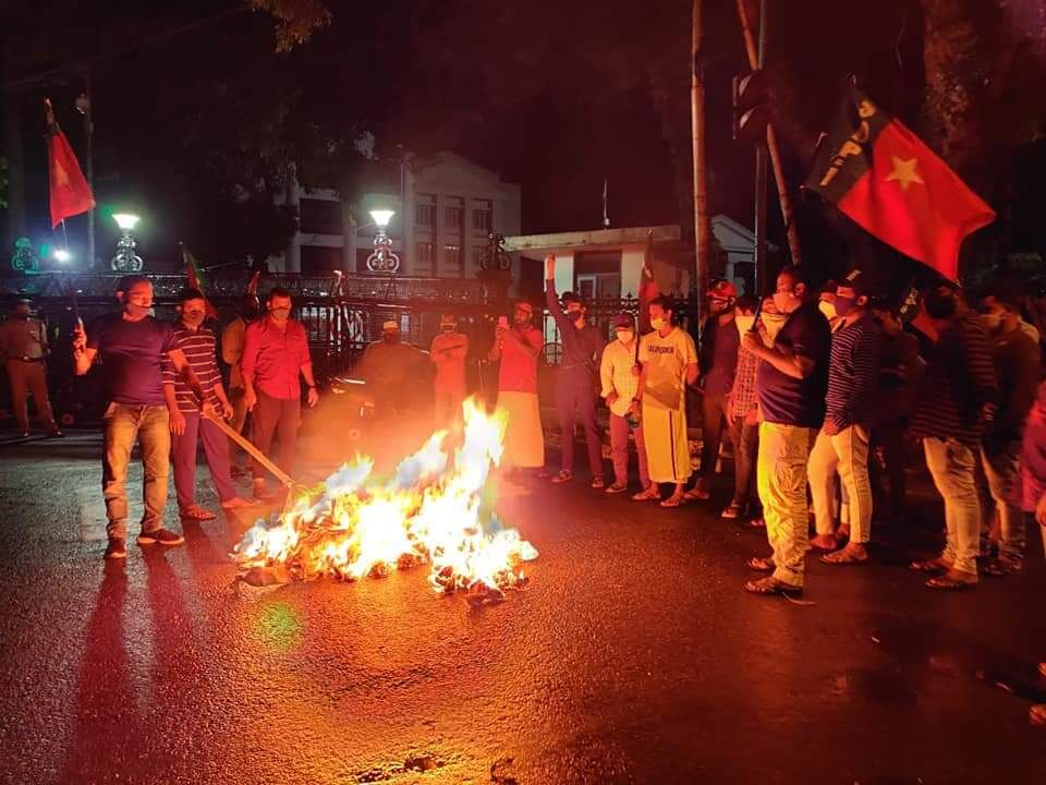 ഇന്നലെ രാത്രി ആദ്യം സെക്രട്ടറിയേറ്റിലേയ്ക്ക് പ്രതിഷേധവുമായെത്തിയ യൂത്ത് കോൺഗ്രസ് പ്രവർത്തകർക്കെതിരെ പോലീസ് ജലപീരങ്കിയും പിന്നീട് ലാത്തിചാർജും നടത്തി. പിന്നാലെ മാർച്ചുമായെത്തിയ ബിജെപി പ്രവർത്തകർക്കു നേരെയും പോലീസ് ലാത്തി വിശി. തുടർന്നുണ്ടായ സംഘർഷത്തിൽ യൂത്ത് കോൺഗ്രസിന്റെയും ബിജെപിയുടെയും പ്രവർത്തകർക്ക് പരിക്കേറ്റു.