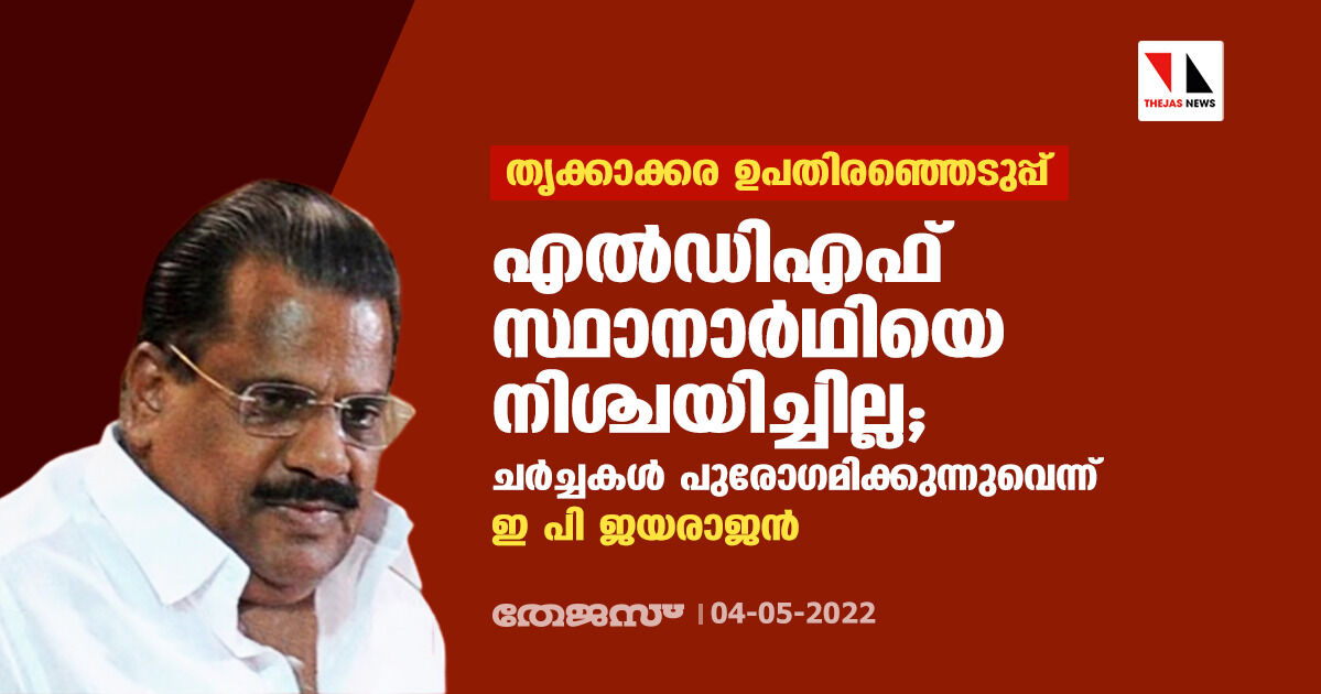 തൃക്കാക്കര ഉപതിരഞ്ഞെടുപ്പ്:എല്ഡിഎഫ് സ്ഥാനാര്ഥിയെ നിശ്ചയിച്ചില്ല; ചര്ച്ചകള് പുരോഗമിക്കുന്നുവെന്ന് ഇ പി ജയരാജന്