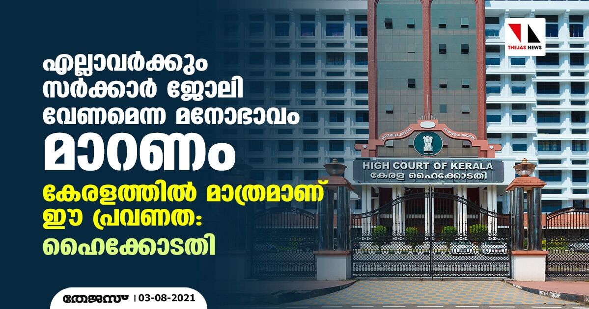 എല്ലാവര്ക്കും സര്ക്കാര് ജോലി വേണമെന്ന മനോഭാവം മാറണം; കേരളത്തില് മാത്രമാണ് ഈ പ്രവണത: ഹൈക്കോടതി