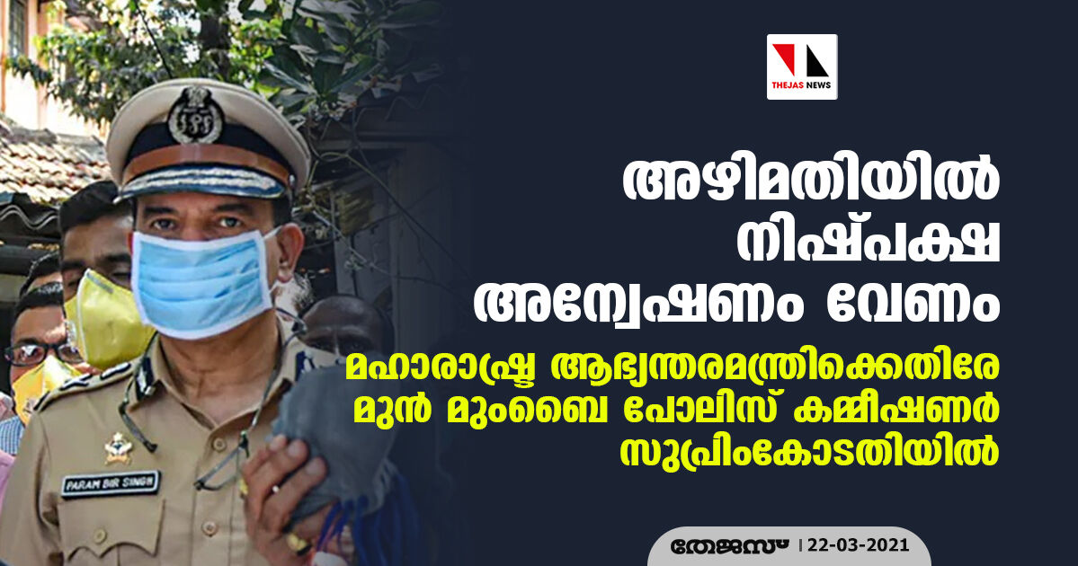 അഴിമതിയില് നിഷ്പക്ഷ അന്വേഷണം വേണം; മഹാരാഷ്ട്ര ആഭ്യന്തരമന്ത്രിക്കെതിരേ മുന് മുംബൈ പോലിസ് കമ്മീഷണര് സുപ്രിംകോടതിയില്