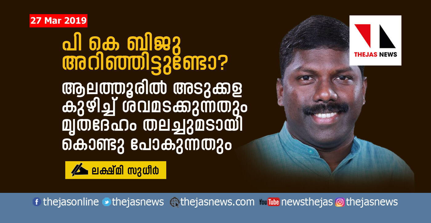 പി കെ ബിജു അറിഞ്ഞിട്ടുണ്ടോ? ആലത്തൂരില് അടുക്കള കുഴിച്ച് ശവമടക്കുന്നതും മൃതദേഹം തലച്ചുമടായി കൊണ്ടു പോകുന്നതും