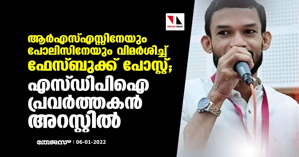 ആർഎസ്എസ്സിനേയും പോലിസിനേയും വിമർശിച്ച് ഫേസ്ബുക്ക് പോസ്റ്റ്; എസ്ഡിപിഐ പ്രവർത്തകൻ അറസ്റ്റിൽ