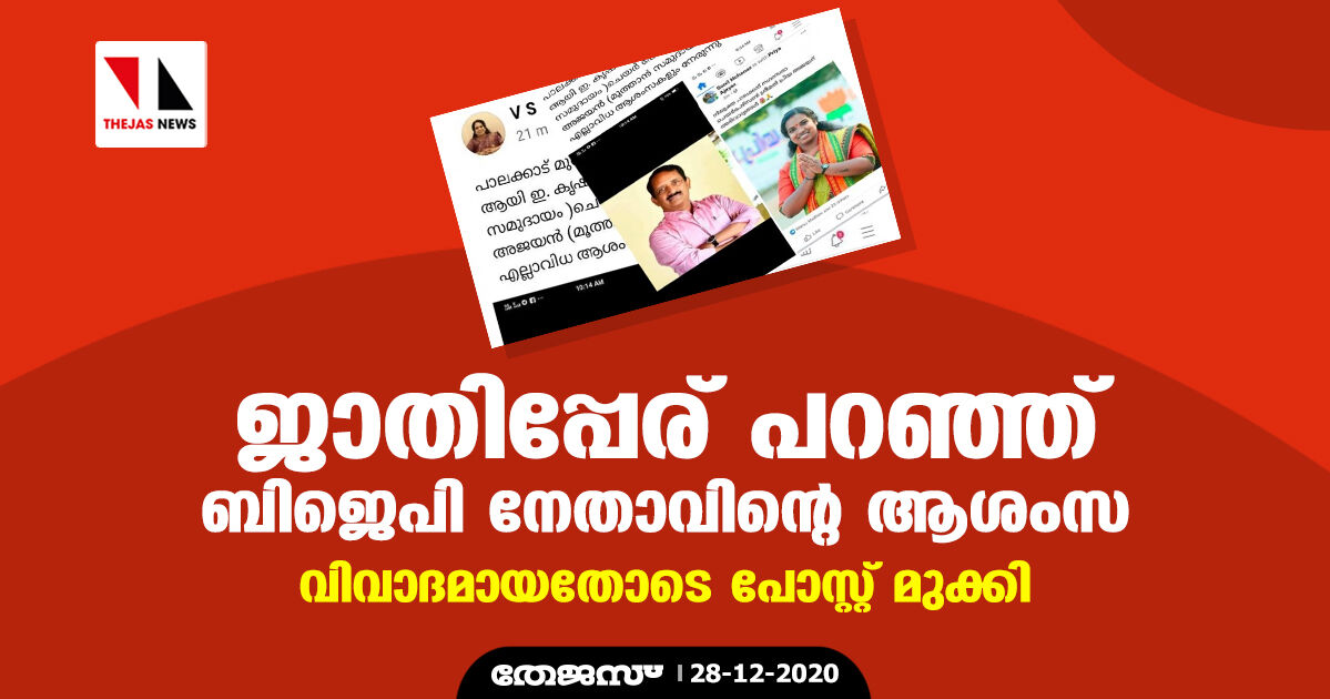 ജാതിപ്പേര് പറഞ്ഞ് ബിജെപി നേതാവിന്റെ ആശംസ; വിവാദമായതോടെ പോസ്റ്റ് മുക്കി
