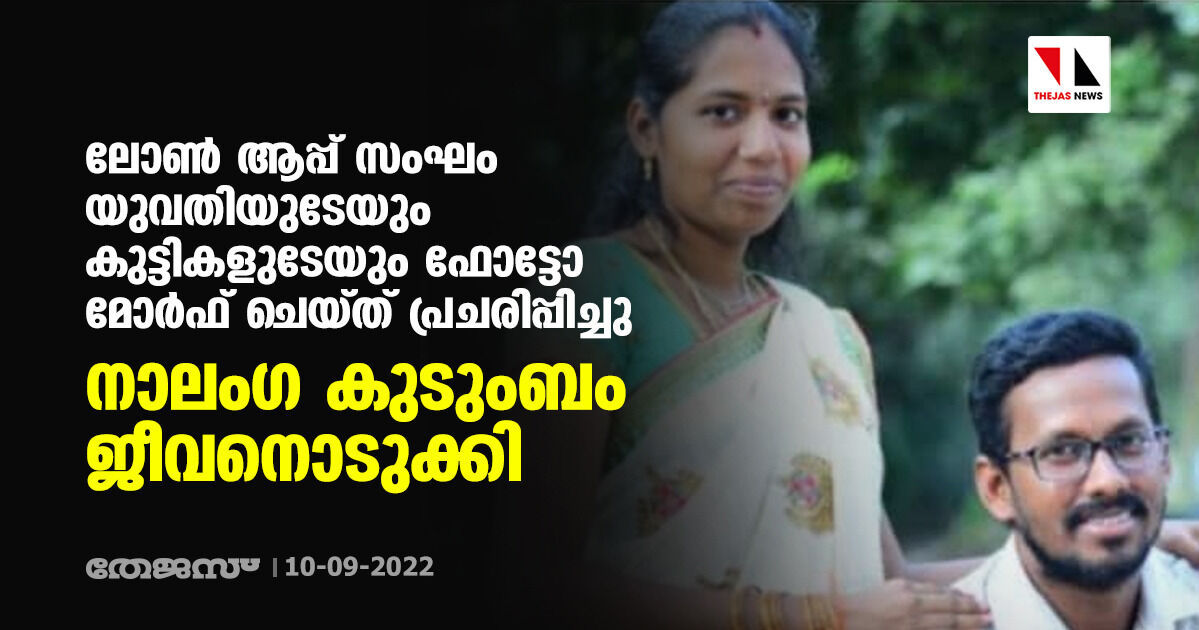 ലോണ് ആപ്പ് സംഘം യുവതിയുടേയും കുട്ടികളുടേയും ഫോട്ടോ മോര്ഫ് ചെയ്ത് പ്രചരിപ്പിച്ചു; നാലംഗ കുടുംബം ജീവനൊടുക്കി