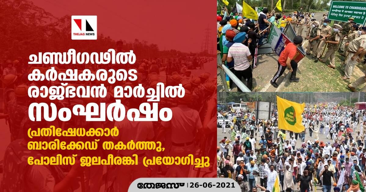 ചണ്ഡീഗഢില് കര്ഷകരുടെ രാജ്ഭവന് മാര്ച്ചില് സംഘര്ഷം; പ്രതിഷേധക്കാര് ബാരിക്കേഡ് തകര്ത്തു, പോലിസ് ജലപീരങ്കി പ്രയോഗിച്ചു