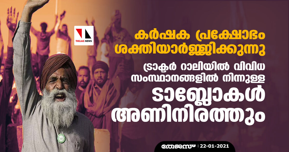 കര്ഷക പ്രക്ഷോഭം ശക്തിയാര്ജ്ജിക്കുന്നു; ട്രാക്ടര് റാലിയില് വിവിധ സംസ്ഥാനങ്ങളില് നിന്നുള്ള ടാബ്ലോകള് അണിനിരത്തും