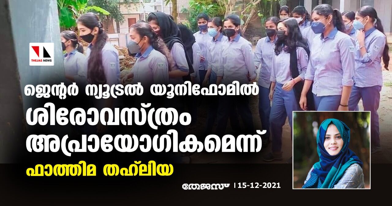 ജെന്റര് ന്യൂട്രല് യൂനിഫോമില് ശിരോവസ്ത്രം അപ്രായോഗികമെന്ന് ഫാത്തിമ തഹ്ലിയ