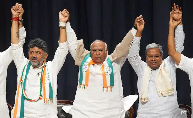 'ഇന്ന് മുഖ്യമന്ത്രി, ഉപമുഖ്യമന്ത്രി, മന്ത്രിമാരായി സത്യപ്രതിജ്ഞ ചെയ്യുന്ന എട്ട് എംഎല്എമാര് എന്നിവരുടെ സത്യപ്രതിജ്ഞാ ചടങ്ങാണ് നടക്കുക. എല്ലാവരും അതില് പങ്കെടുക്കുന്നു. ഞാനും അതിനാണ് പോകുന്നത്. ഇത് ഒരു കാര്യമാണ്. കര്ണാടകയില് പുതിയതും ശക്തവുമായ ഒരു കോണ്ഗ്രസ് സര്ക്കാര് അധികാരത്തില് വന്നതില് സന്തോഷമുണ്ട്. ഇത് കര്ണാടകയ്ക്ക് ഗുണം ചെയ്യും, ഇത് രാജ്യത്ത് നല്ല അന്തരീക്ഷം സൃഷ്ടിക്കുന്നതായും ഖാര്ഗെ പറഞ്ഞു. സിദ്ധരാമയ്യയും ശിവകുമാറും വെള്ളിയാഴ്ച രാത്രി വൈകുവോളം ഡല്ഹിയില് പാര്ട്ടി ഹൈക്കമാന്ഡുമായി പുതിയ മന്ത്രിസഭയില് ഉള്പ്പെടുത്തേണ്ടവരുടെ പേരുകള് ചര്ച്ച ചെയ്തിരുന്നു.