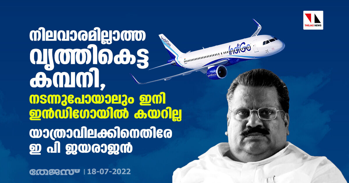 നിലവാരമില്ലാത്ത വൃത്തികെട്ട കമ്പനി, നടന്നുപോയാലും ഇനി ഇന്ഡിഗോയില് കയറില്ല; യാത്രാവിലക്കിനെതിരേ ഇ പി ജയരാജന്
