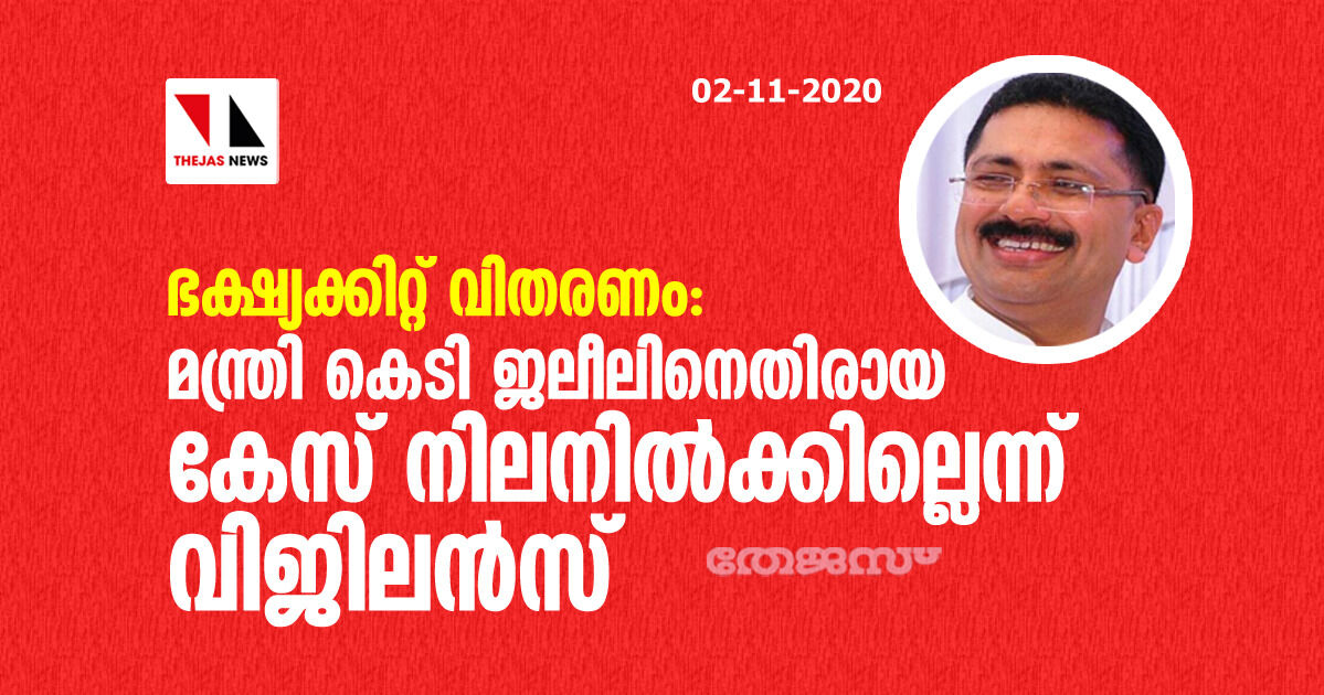 ഭക്ഷ്യക്കിറ്റ് വിതരണം: മന്ത്രി കെ ടി ജലീലിനെതിരായ കേസ് നിലനില്ക്കില്ലെന്ന് വിജിലന്സ്