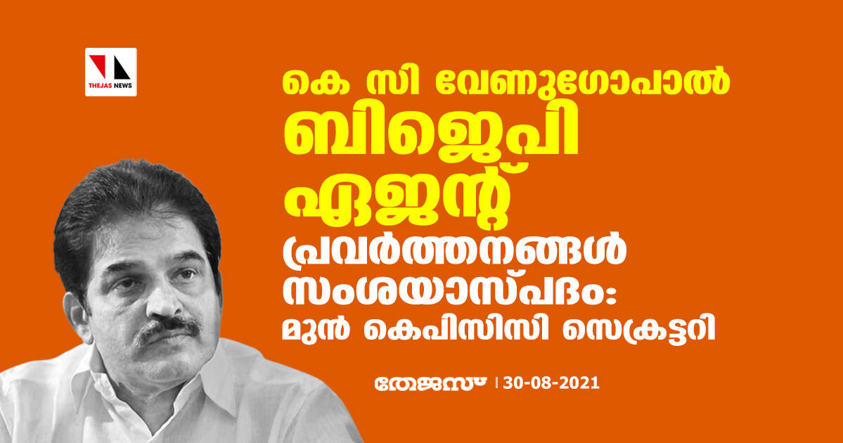കെസി വേണുഗോപാല് ബിജെപി ഏജന്റ്, പ്രവര്ത്തനങ്ങള് സംശയാസ്പദം: മുന് കെപിസിസി സെക്രട്ടറി