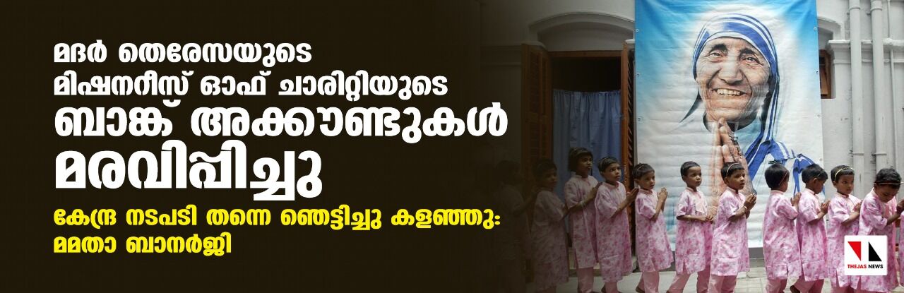 മദര് തെരേസയുടെ മിഷനറീസ് ഓഫ് ചാരിറ്റിയുടെ ബാങ്ക് എക്കൗണ്ടുകള് മരവിപ്പിച്ചു:കേന്ദ്ര നടപടി തന്നെ ഞെട്ടിച്ചു കളഞ്ഞു; മമതാ ബാനര്ജി