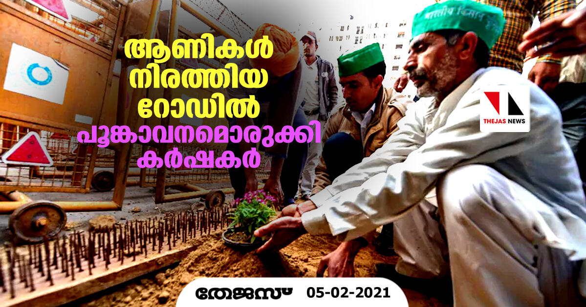 ഈ സ്ഥലത്തേക്ക് ട്രക്കുകളിലെത്തിച്ച മണ്ണുമായി കര്ഷകരെത്തി. റോഡില് സ്ഥാപിച്ചിരുന്ന ആണികള്ക്ക് സമീപത്തായി മണ്ണിട്ട് പൂച്ചെടികള് നട്ടു. ആണികള് നിറഞ്ഞ റോഡ് മൊത്തത്തില് ഒരു പൂന്തോട്ടമാക്കിയ ശേഷമാണ് സമരത്തിലുള്ള കര്ഷകര് പ്രതിഷേധ വേദിയിലേക്ക് മടങ്ങിയത്. ഡൽഹിയിലേക്ക് കടക്കാതിരിക്കാനായി റോഡില് ആണികള് പാകിയ പോലിസിനുള്ള മറുപടിയാണ് ഈ പൂച്ചെടികളെന്നാണ് കര്ഷകരുടെ നിലപാട്.