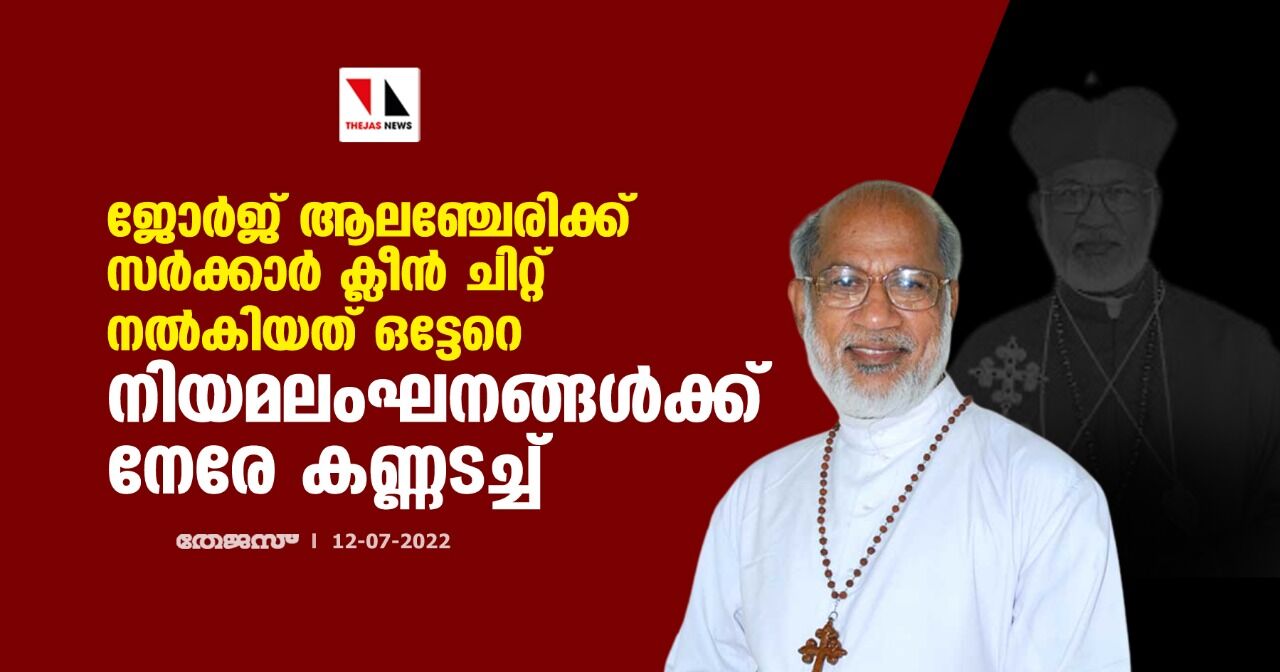 ജോര്ജ് ആലഞ്ചേരിക്ക് സര്ക്കാര് ക്ലീന് ചിറ്റ് നല്കിയത് ഒട്ടേറെ നിയമലംഘനങ്ങള്ക്ക് നേരേ കണ്ണടച്ച്
