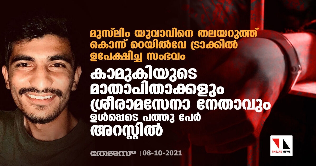 മുസ്ലിം യുവാവിനെ തലയറുത്ത് കൊന്ന് റെയില്വേ ട്രാക്കില് തള്ളിയ സംഭവം: കാമുകിയുടെ മാതാപിതാക്കളും ശ്രീരാമസേനാ നേതാവും ഉള്പ്പെടെ പത്തു പേര് അറസ്റ്റില്