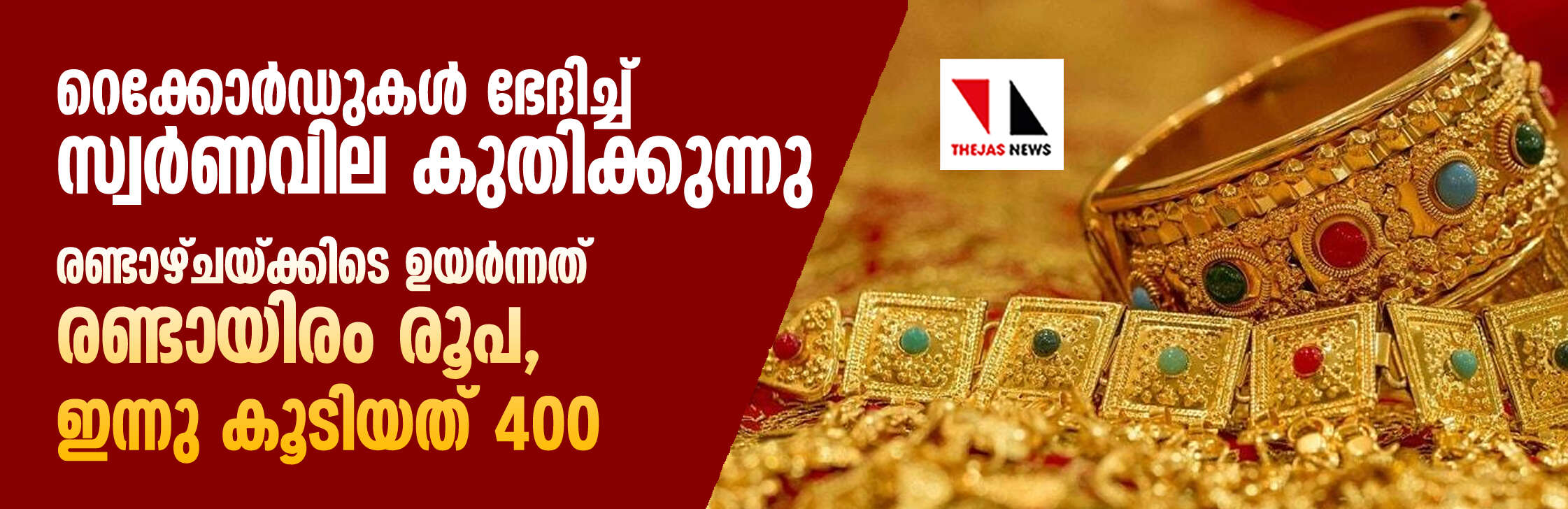 റെക്കോര്ഡുകള് ഭേദിച്ച് സ്വര്ണവില കുതിക്കുന്നു; രണ്ടാഴ്ചയ്ക്കിടെ ഉയര്ന്നത് രണ്ടായിരം രൂപ, ഇന്നു കൂടിയത് 400