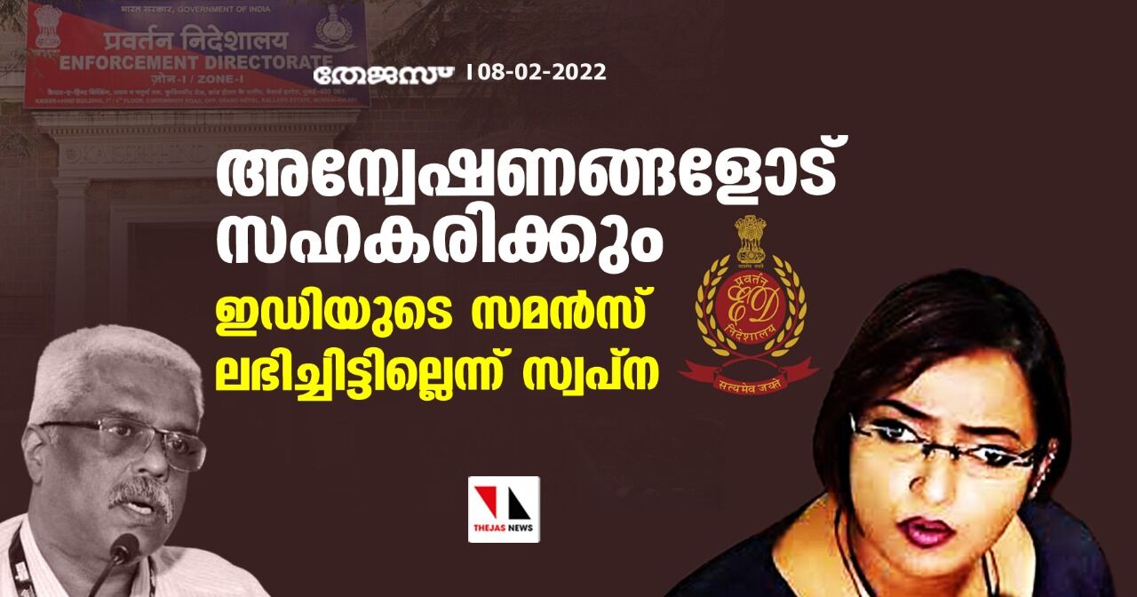 അന്വേഷണങ്ങളോട് സഹകരിക്കും; ഇഡിയുടെ സമൻസ് ലഭിച്ചിട്ടില്ലെന്ന് സ്വപ്ന