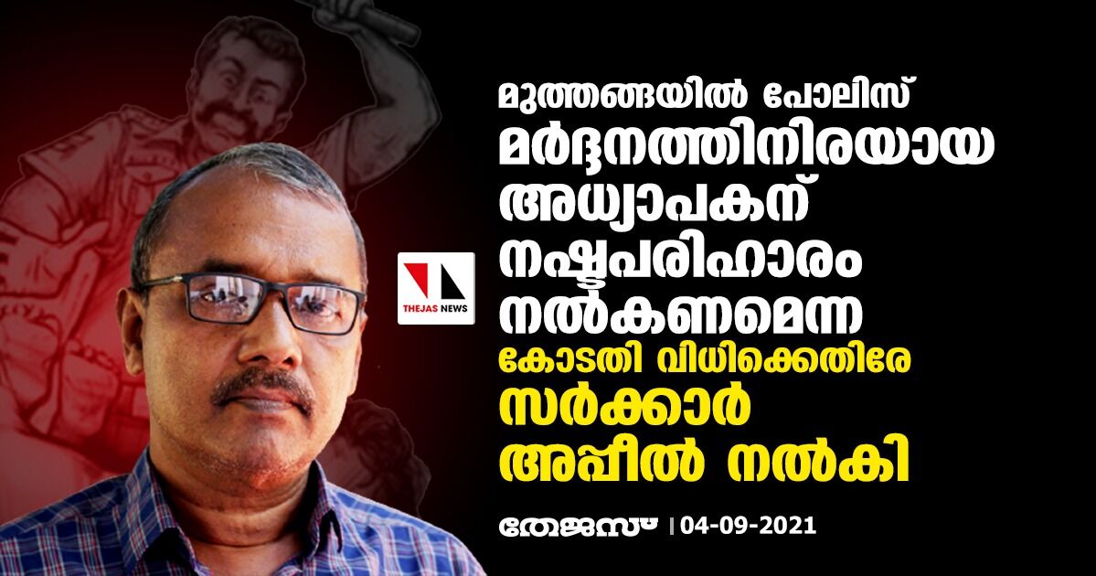മുത്തങ്ങയില് പോലിസ് മർദ്ദനത്തിനിരയായ അധ്യാപകന് നഷ്ടപരിഹാരം നല്കണമെന്ന കോടതി വിധിക്കെതിരേ സര്ക്കാര്