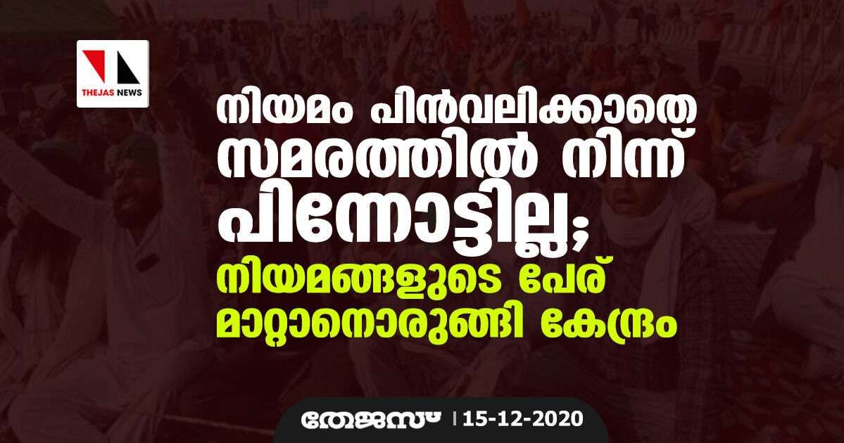നിയമം പിന്വലിക്കാതെ സമരത്തില് നിന്ന് പിന്നോട്ടില്ല; നിയമങ്ങളുടെ പേര് മാറ്റാനൊരുങ്ങി കേന്ദ്രം