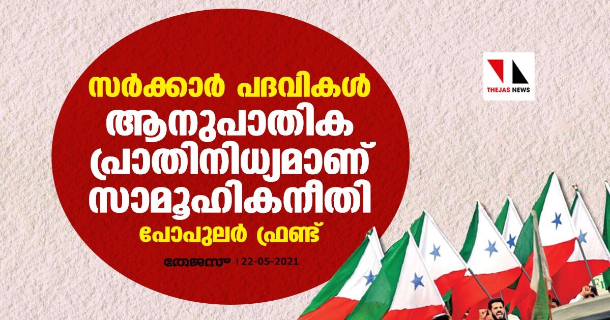 സര്ക്കാര് പദവികള്; ആനുപാതിക പ്രാതിനിധ്യമാണ് സാമൂഹികനീതി: പോപുലര് ഫ്രണ്ട്