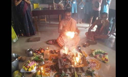 #Karnataka : Primary schools have started from May 16. Surprisingly government schools of D.k District (#Mangalore) Padibagilu, Harihara pallathadka and Poonjalkatte have started the school with 'Gana Homa' Poojas.