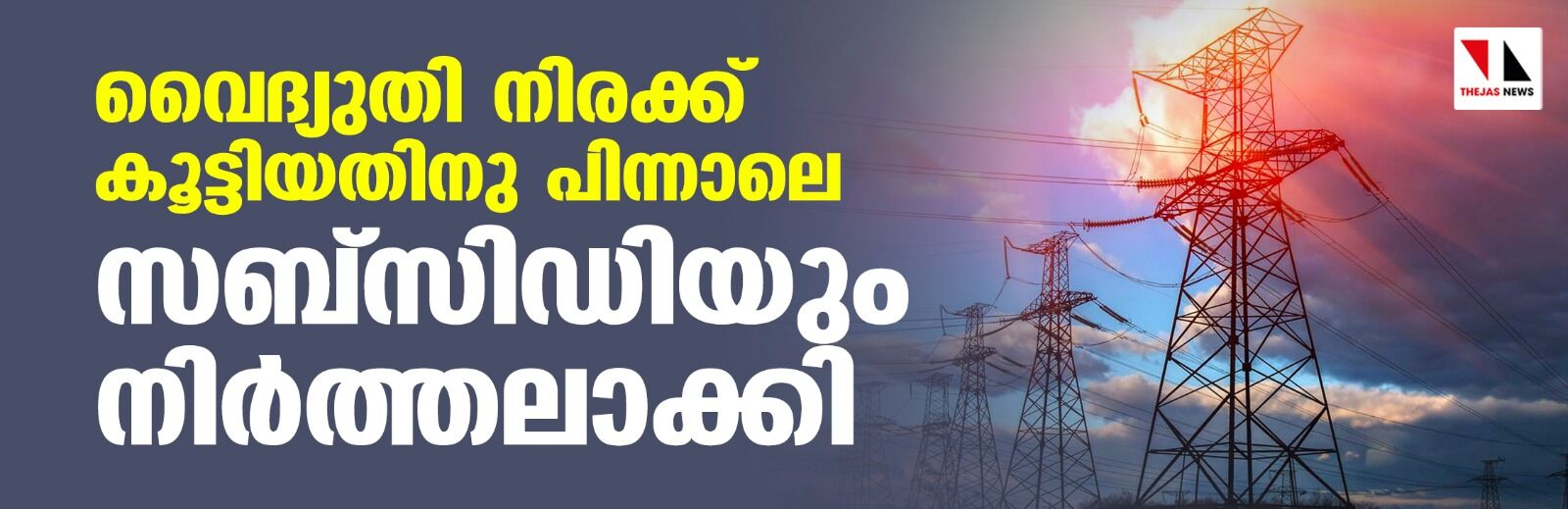 വൈദ്യുതി നിരക്ക് കൂട്ടിയതിനു പിന്നാലെ സബ്സിഡിയും നിര്ത്തലാക്കി