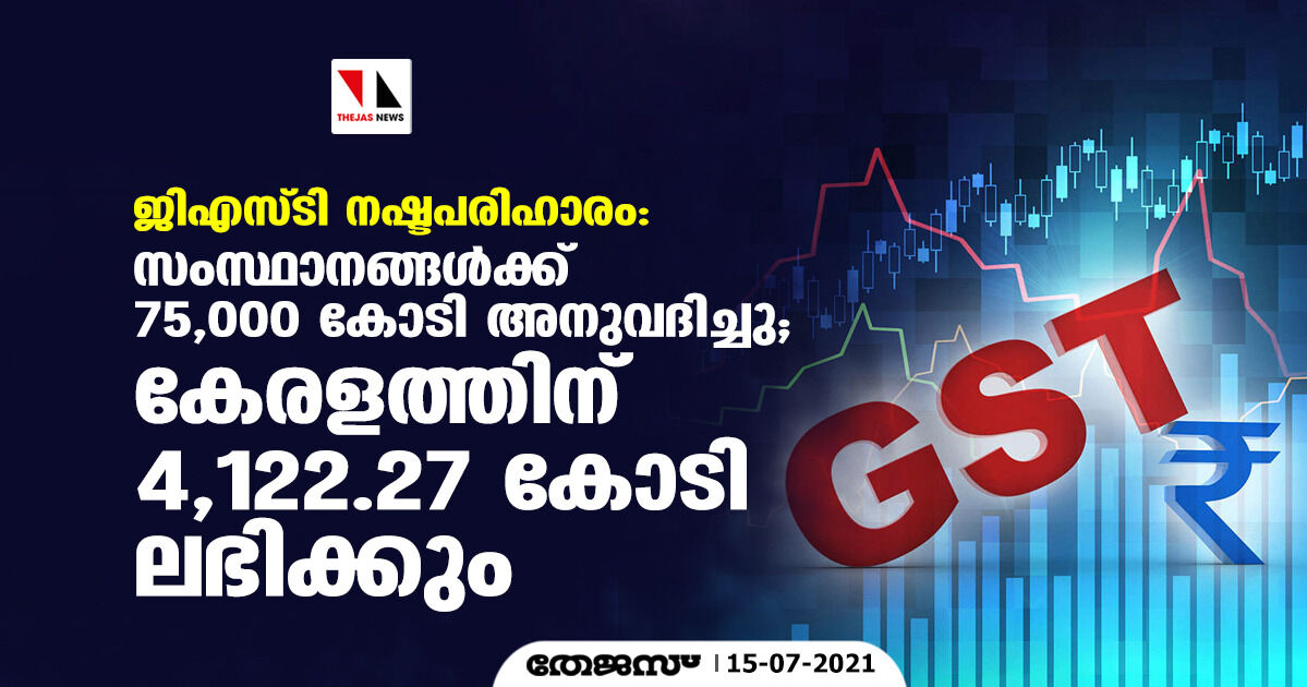 ജിഎസ്ടി നഷ്ടപരിഹാരം: സംസ്ഥാനങ്ങള്ക്ക് 75,000 കോടി അനുവദിച്ചു; കേരളത്തിന് 4,122.27 കോടി ലഭിക്കും