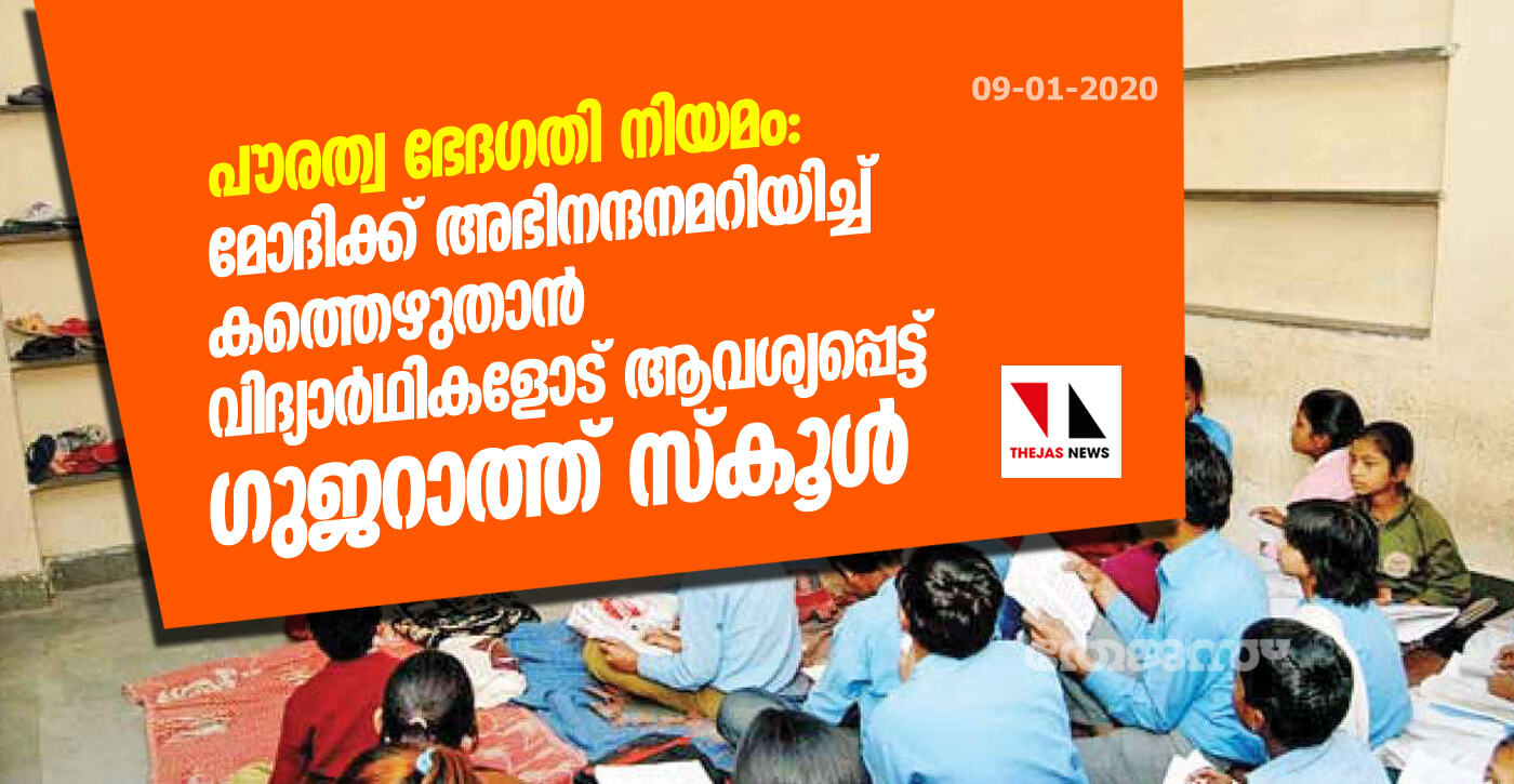 പൗരത്വ ഭേദഗതി നിയമം: മോദിക്ക് അഭിനന്ദനമറിയിച്ച് കത്തെഴുതാന് വിദ്യാര്ഥികളോട് ആവശ്യപ്പെട്ട് ഗുജറാത്ത് സ്കൂള്