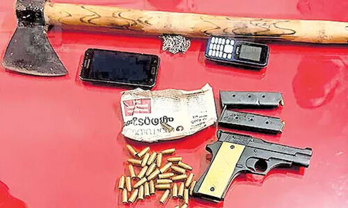 കിഷോറിന്റെ വീട്ടിലെ അടുക്കളയില് പ്രഷര് കുക്കറിനുള്ളില് ഒളിപ്പിച്ച നിലയിലായിരുന്നു യുഎസ് നിര്മിത തോക്കും 53 വെടിയുണ്ടകളും. പരിശോധന നടത്തുന്ന സമയത്ത് കിഷോര് വീട്ടില് ഉണ്ടായിരുന്നില്ല. അടുക്കളയില്ത്തന്നെ വിറകിനടിയില് ഒളിപ്പിച്ചുവച്ചിരുന്ന രണ്ടു വാളുകളും ഒരു മഴുവും സ്റ്റീല് പൈപ്പും കണ്ടെത്തി. തോക്ക് ലോഡ് ചെയ്തുവച്ച നിലയിലായിരുന്നു. മാസങ്ങള്ക്കു മുമ്പ് ഗുണ്ടകള് തമ്മിലുള്ള കുടിപ്പകയില് കിഷോര് തോക്ക് ചൂണ്ടി ഭീഷണിപ്പെടുത്തിയതായ വിവരം പോലിസിനു ലഭിച്ചിരുന്നു. 2017ല് നാടന് തോക്കുമായി കിഷോറിനെ പോലിസ് അറസ്റ്റ് ചെയ്തിരുന്നു. ഒരുവര്ഷം പട്ടാളത്തില് ജോലി ചെയ്തിരുന്ന കിഷോറിനു തോക്ക് കൈകാര്യം ചെയ്യാന് അറിയാം എന്നു പോലിസ് പറഞ്ഞു.