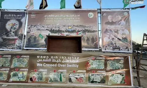 ഗസ നിവാസികളെ ജോര്ദാനിലേക്കോ ഈജിപ്തിലേക്കോ മാറ്റുമെന്ന ട്രംപിന്റെ പ്രഖ്യാപനം തളളുകയാണെന്ന് വ്യക്തമാക്കി ''ജറുസലേമിലേക്ക് മാത്രമേ മാറൂ''. എന്നെഴുതിയ ബാനറുകള്ക്ക് കീഴെയാണ് തടവുകാരെ കൈമാറിയത്. '' ഞങ്ങള് വേഗത്തില് അക്കരെ കടന്നു'' എന്നും ബാനറിലുണ്ടായിരുന്നു. തൂഫാനുല് അഖ്സയില് കുടിയേറ്റ ഭൂമിയില് പ്രവേശിച്ചതിന്റെ വിവരങ്ങളും ഇതിലുണ്ടായിരുന്നു.