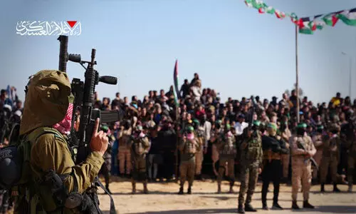 അധിനിവേശ കാലത്ത് ഇസ്രായേലില് നിന്നും പിടിച്ചെടുത്ത പത്തുതരം ആയുധങ്ങള് പ്രദര്ശിപ്പിച്ചു. ഇസ്രായേല് അധിനിവേശത്തില് രക്തസാക്ഷികളായ മുഹമ്മദ് ദെയ്ഫ്, റാഫി സലാമ, ഷാദി ബറൂദ്, തയ്സീര് അല് മുബാഷിര് എന്നിവരുടെ ചിത്രങ്ങളും പ്രവര്ത്തകര് ഉയര്ത്തിപ്പിടിച്ചു.