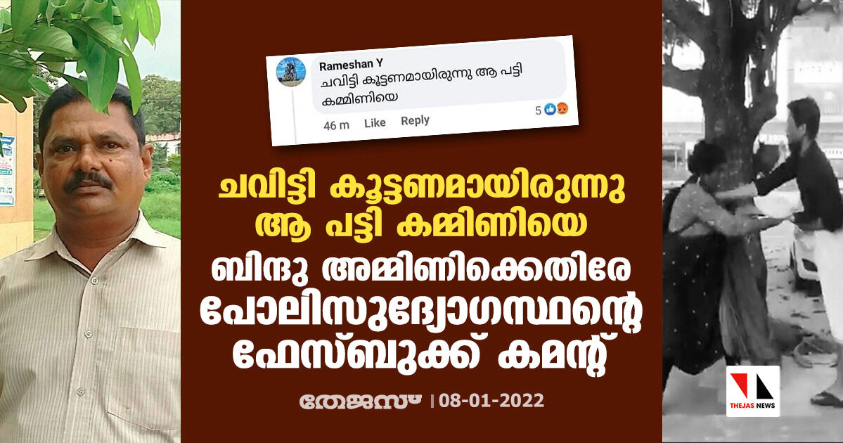 "ചവിട്ടി കൂട്ടണമായിരുന്നു ആ പട്ടി കമ്മിണിയെ"; ബിന്ദു അമ്മിണിക്കെതിരേ പോലിസുദ്യോഗസ്ഥന്റെ ഫേസ്ബുക്ക് കമന്റ്