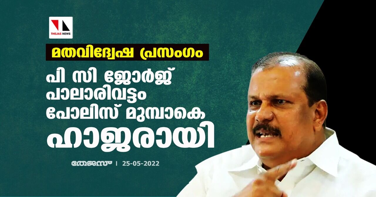 മതവിദ്വേഷ പ്രസംഗം: പി സി ജോര്ജ് പാലാരിവട്ടം പോലിസ് മുമ്പാകെ ഹാജരായി