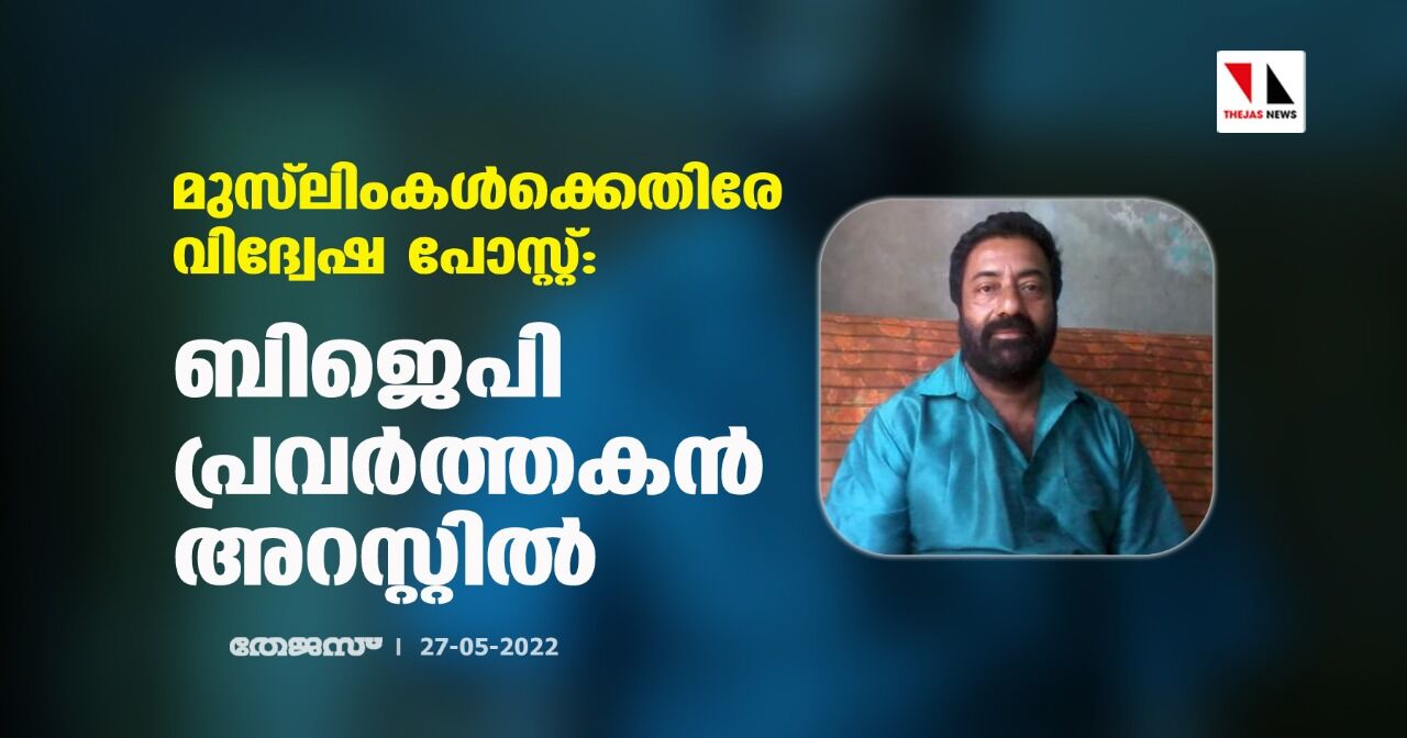 മുസ്ലിംകള്ക്കെതിരേ വിദ്വേഷ പോസ്റ്റ്: ബിജെപി പ്രവര്ത്തകന് അറസ്റ്റില്