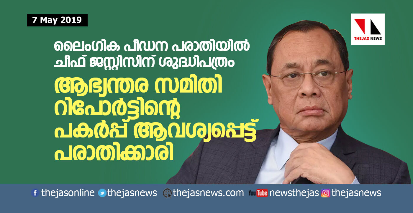 ലൈംഗിക പീഡന പരാതിയില് ചീഫ് ജസ്റ്റിസിന് ശുദ്ധിപത്രം: ആഭ്യന്തര സമിതി റിപോര്ട്ടിന്റെ പകര്പ്പ് ആവശ്യപ്പെട്ട് പരാതിക്കാരി