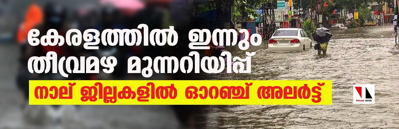 കേരളത്തില് ഇന്നും തീവ്രമഴ മുന്നറിയിപ്പ്; നാല് ജില്ലകളില് ഓറഞ്ച് അലര്ട്ട്