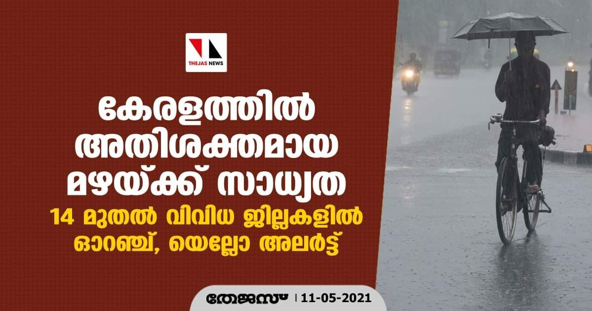 കേരളത്തില് അതിശക്തമായ മഴയ്ക്ക് സാധ്യത ;14 മുതല് വിവിധ ജില്ലകളില് ഓറഞ്ച്, യെല്ലോ അലര്ട്ട്